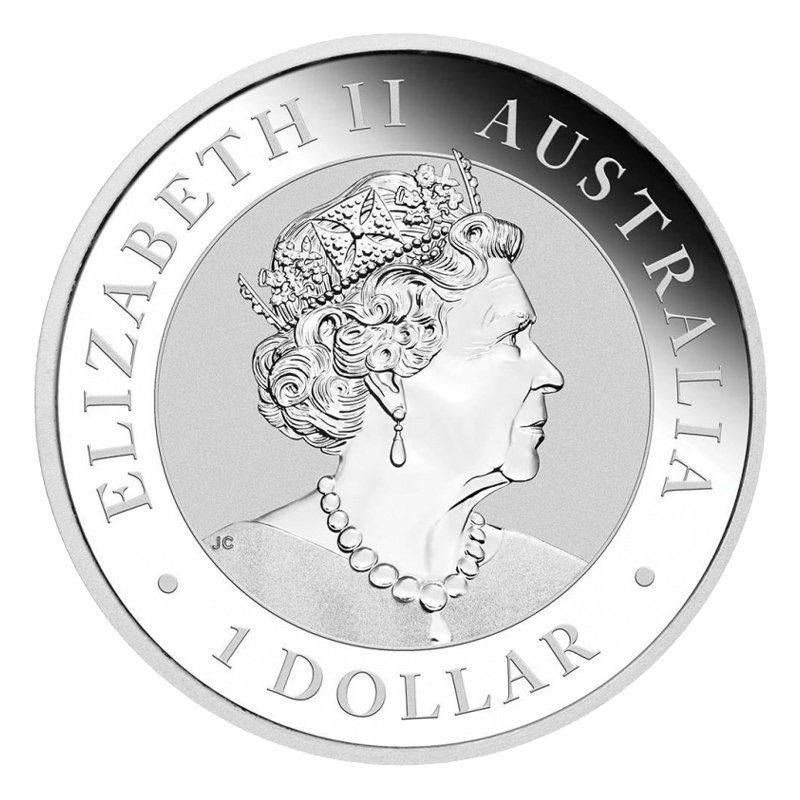 The Australian Kookaburra bullion coin is one of the most popular silver bullion coins worldwide. Since 1990 the Perth Mint has struck the Kookaburra in different weight units and with annually changing designs. In 2022 the motive appears in a new design features a kookaburra sitting on an ornamented birdbath. The Agapanthus plant, typical for Australian gardens, is depicted in the background. The inscription "KOOKABURRA", the traditional mintmark "P" of the Perth Mint as well as the year of issue, the weight and the fineness complete the design. The reverse shows the Jody Clark effigy of Her Majesty Queen Elizabeth II and the denomination. The kookaburra is the largest member of the kingfisher family and the national bird of Australia. The coin was minted by the Perth Mint from one ounce of 99.99% pure silver. The mintage is limited to 500,000 pieces worldwide. The bullion coin is delivered in a protective capsule.